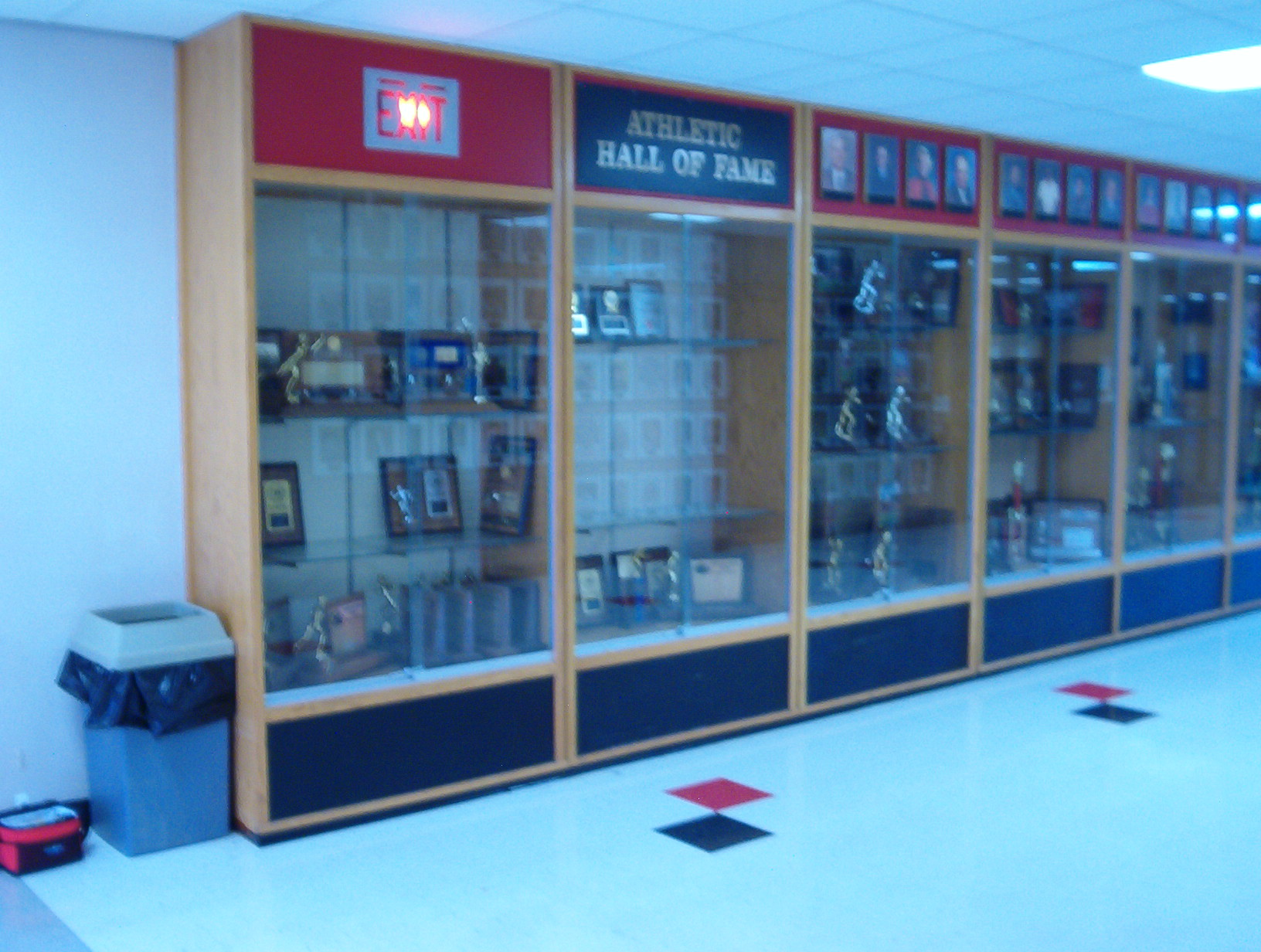 Trophy and display cases, from the most basic contemporary (shown) to tradional and ornate classic can be custom designed, built and installed by Aadland Pipe Organ Co. |